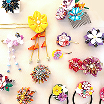 ひとつひとつ丁寧に作られたつまみ細工。和でも洋でもおしゃれに使えます。